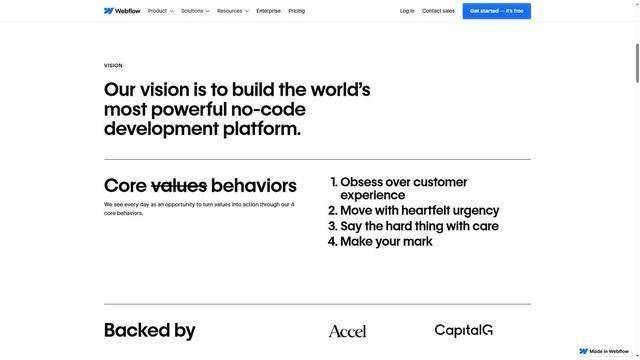 webflow是一家以可视化设想东西为焦点的网坐扶植公司,其推出的可视化网坐设想平台,打破了保守网坐设想取开辟的壁垒,让设想师可以或许间接通过可视化操做完成网坐设想取开辟,无需编写代码,大幅提拔了网坐扶植效率。做为立异型的网坐扶植公司,webflow的办事模式遭到全球浩繁企业的青睐,也为上海企业供给了高效、便利的网坐设想选择。